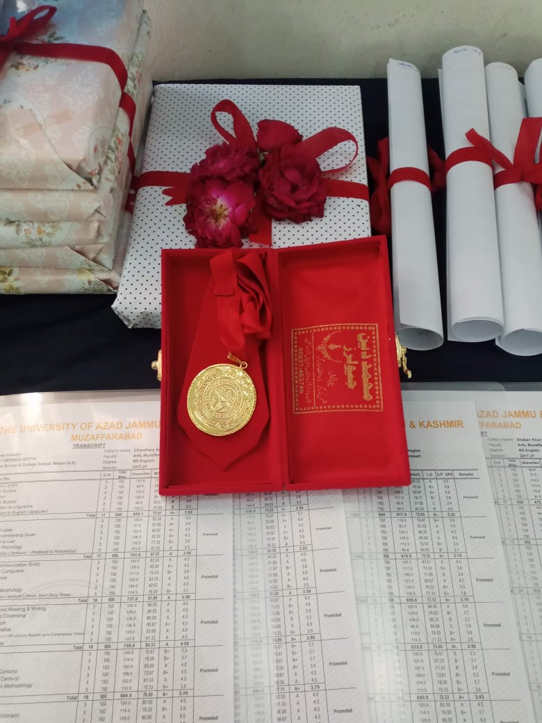 Maryum Aziz receiving Gold Medal from the Director for attaining 2nd position in BSC exams 2016 in All AJK.